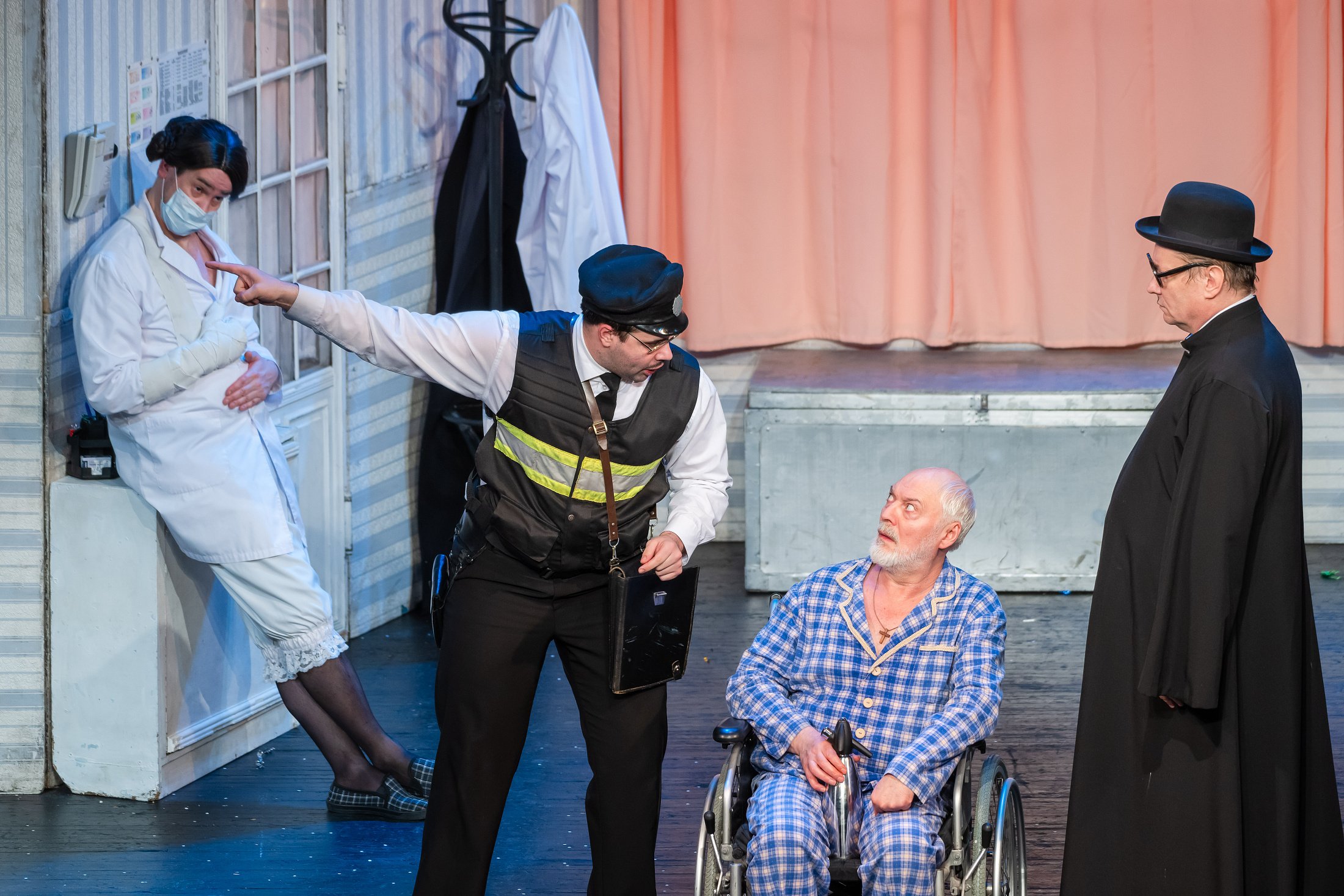 На большой сцене театра искрометная комедия с каскадом неожиданностей, сюрпризами с переодеваниями, ошарашенными коллегами, женами и любовницами, перепуганными родителями…