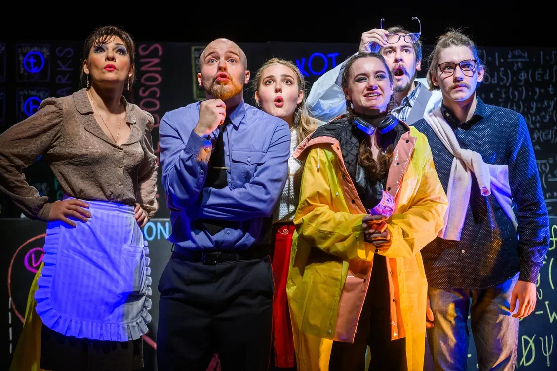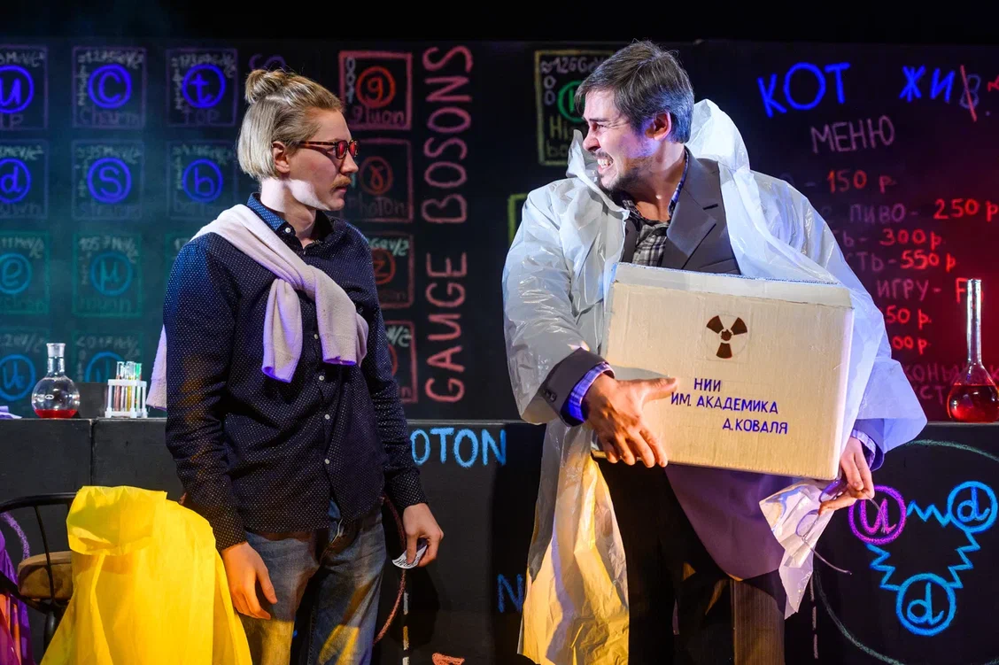 Одного названия уже достаточно, чтобы заинтересоваться этим спектаклем. Герои выпивают в баре и играют в «стикеры». Но спрашивая: «Я реально существую?», вряд ли подозревают, как на их примере зрители убедятся, что квантовая механика – совсем не страшно и не так уж сложно.