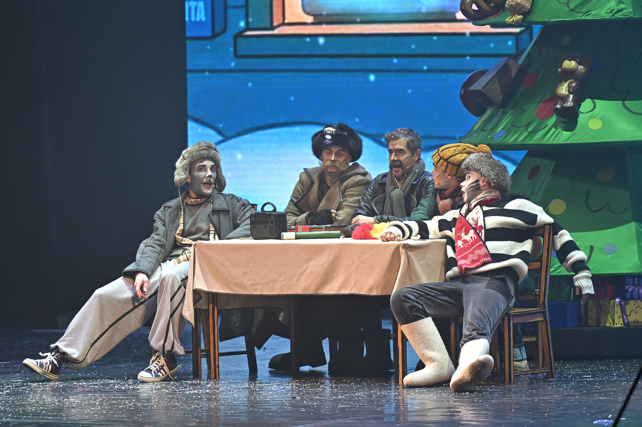 «Новый год в Простоквашино. Версия 2.0» — это семейный новогодний спектакль, созданный в эстетике рисованного мира. На сцене всё будто оживает из любимых мультфильмов: нарисованные футажи, декорации в стиле ретро-иллюстраций, актёры в костюмах, стилизованных под 2D-персонажей. Все предметы, костюмы и даже грим оформлены так, будто вы попали в нарисованный мир. Мягкие ретро-тона, тёплое освещение, мерцание снега и приглушённые тени погрузят нас всех в атмосферу зимней сказки.